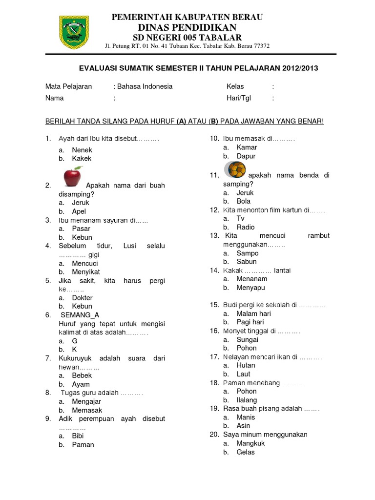 Bahasa merupakan fondasi penting dalam perkembangan kognitif dan sosial anak-anak. Di kelas 1 SD, pengajaran bahasa Indonesia difokuskan pada pengenalan huruf, kata, dan kalimat sederhana. Kemampuan berbahasa yang baik akan membantu siswa dalam memahami materi pelajaran lainnya, berkomunikasi dengan efektif, dan mengembangkan kemampuan berpikir kritis. Artikel ini akan membahas secara mendalam tentang soal bahasa kelas 1 SD, mencakup berbagai aspek penting seperti tujuan pembelajaran, materi yang diujikan, contoh soal, tips mengerjakan soal, dan cara membantu anak belajar bahasa Indonesia dengan menyenangkan.
